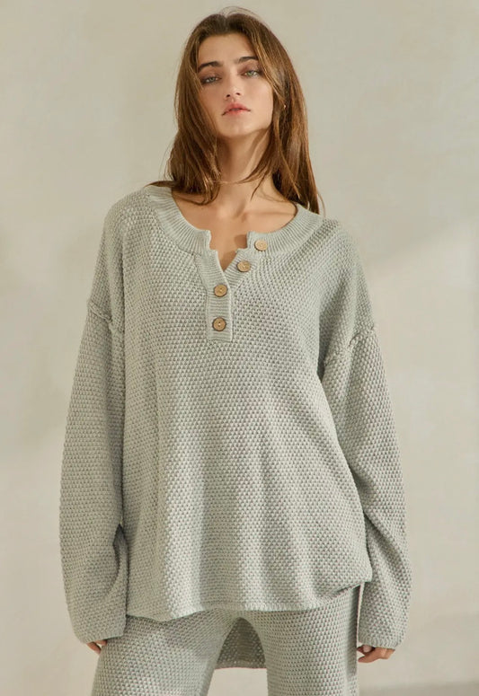 Oversized Grey Knit Henley Top