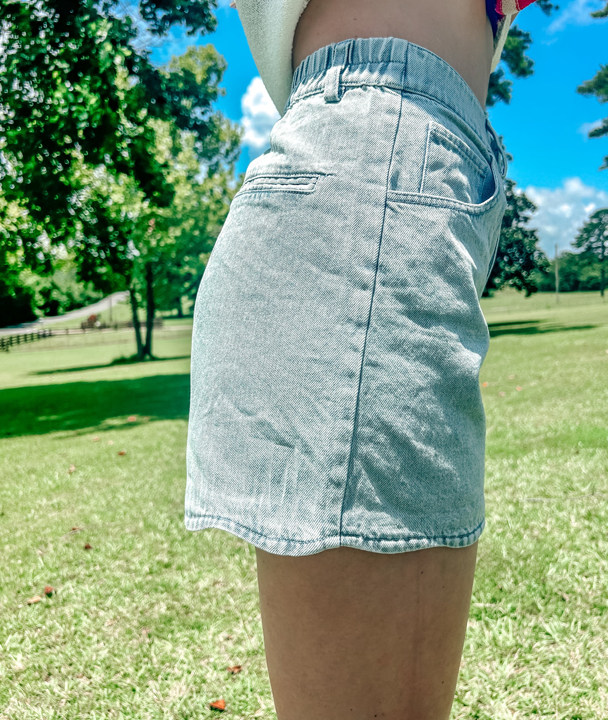 These scalloped denim shorts feature a light wash, giving them a fresh and laid-back vibe. The scalloped hem adds a playful touch, making them perfect for casual outings. With a comfortable fit and classic five-pocket design, they blend style and functionality effortlessly. Ideal for pairing with a cozy sweater or a simple tee for a chic summer look!